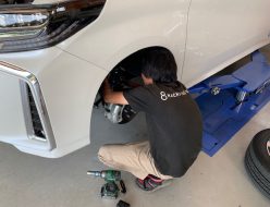 後期型アルファードの入庫があり、ダウンサスの取り付けを行いました。アルファードハイブリット対応の部品は少ないので部品の確認にも時間がかかります。