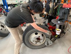 だいたいトラックは6本のタイヤを交換するので、取り外しや組み換えで合計で1トン近くの物を持ったり下ろしたりします。