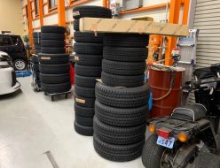 ありがたい事に早期注文のスタッドレスタイヤのご注文も多く頂戴しており、すでに工場内は山が出来始めています。