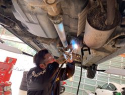 先日入庫したお車のマフラー溶接をしました。しっかり溶接します!
